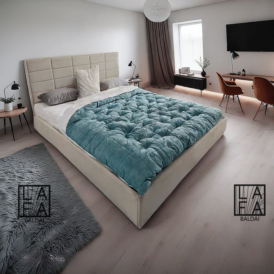 Įspūdinga moderni dvigulė lova „Urban“ su kvadratinėmis galvugalio pagalvėlėmis