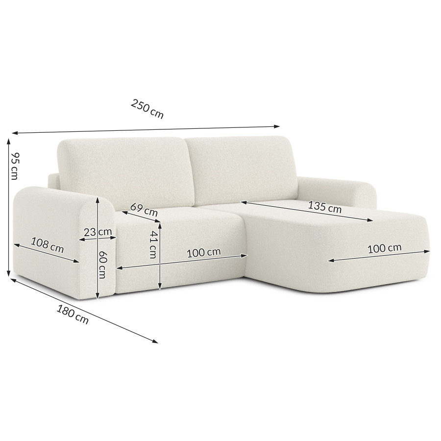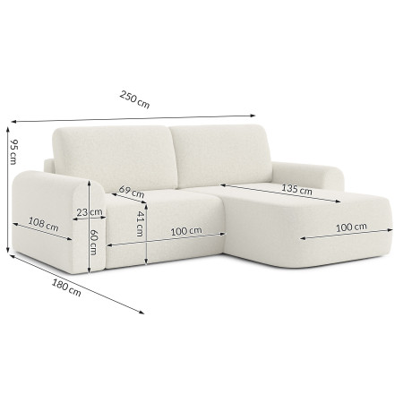 Kampinė sofa BORELLO išsiskiria tarp mūsų gaminių dėl savo užapvalintų formų ir nepaprastai malonaus liesti „Quelle“ audinio. Ši medžiaga yra itin atspari dilimui ir pasižymi jaukia, avies vilną primenančia tekstūra. Baldas puikiai tiks minimalistinio ir šiuolaikiško stiliaus interjerams. Tai bus puikus pasirinkimas tiek kasdieniam naudojimui dėl patogios sėdimosios dalies, tiek ir retkarčiais nakvynei. Jei Jūsų interjeras atrodo šiek tiek šaltas ar stokojantis charakterio – šis modelis kaip tik Jums!